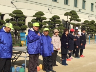 暑い日も寒い日も、登下校の見守りを毎日行ってくださっている見守り隊の方々に、児童会の代表が、お礼の言葉を述べました。