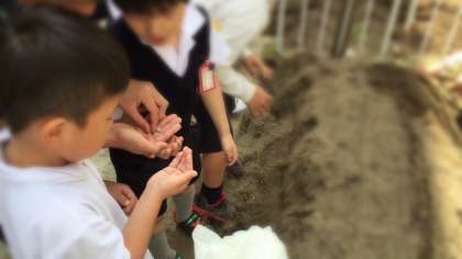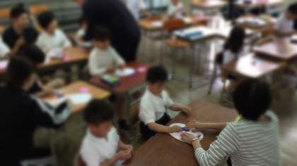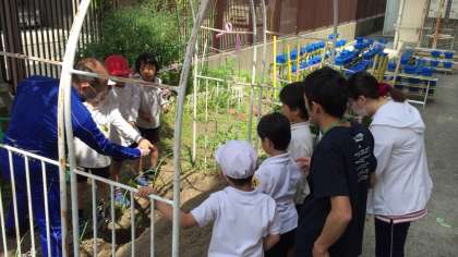 小さな種をつかんでひとつずつ丁寧に種まきしました。順番を待っている間は、教室で折り紙を使ってアジサイを作りました。今日から来ているインターンシップの大学生と一緒に活動しました。