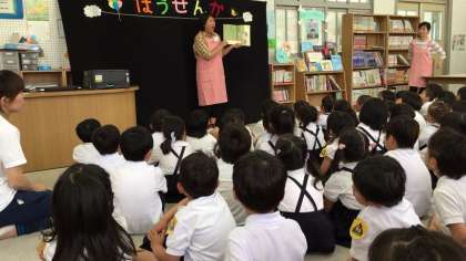 昼休みの時間に1年生が図書室に集まりました。「ほうせんか」の方と一緒に『ぼ〜くらはみんな生〜きている、、、』と手話をまじえて歌いました。その後、絵本の詩を聞かせていただきました。楽しくて、心あたたまる時間になりました。