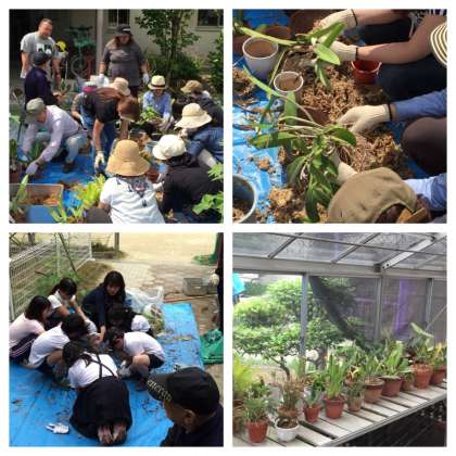元PTA会長に教わりながら、PTA役員・実行委員らの方が蘭の植え替えをしました。たいへんお世話になりました。ありがとうございました。