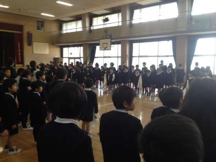 2月20日(木) 今日の児童集会は、28日(金)に行う「卒業生を祝う会」のリハーサルをしました。(以前3月7日とお知らせしたのは、あやまりです。すみません!!)6年生は、参加していないので、縦割り班のメンバーを並べたり、指示を出したりと、大忙しの5年生でした。「6年生っていつもこんなふうにがんばってくれてたんや。」「ちょっと恥ずかしいけど、なんか、自分ががんばらないといけないと思うとうれしいな。」などの声も。こうやって、一つ一つ積み重ねて5年生が、4月からは学校の最高学年としてみんなをリードしていくようになるのですね。