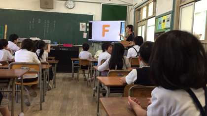 リズムに合わせてアルファベットを読みました。低学年から楽しく学習しています。