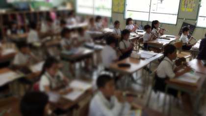 リコーダーの練習をしました。オルガンに合わせて一斉に吹きました。がんばる音が教室に響きました。