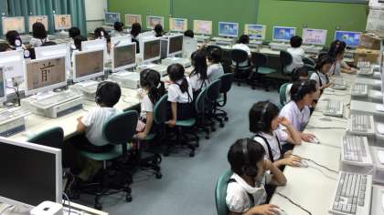 パソコン教室で放課後ステップアップ教室をしました。前半の部は、2.3年生です。画面に向かって学習しました。楽しみながら勉強できたようです。