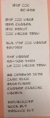 この前の全校朝会でまどみちおさんの詩を紹介しました。「ぞうさん」「やぎさんゆうびん」「1ねんせいになったら」など、みんながよく知っている童謡を作り、先日104歳の長寿を全うした詩人です。校長室の前にも「くまさん」「ぼくがここに」を掲示しています。下校時に声に出して読んでいる子どもたち。”かけがえのない自分”を感じてほしいと願っています。