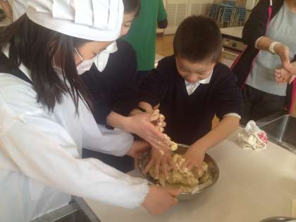 今年度最後の民族クラブは、友達も誘って、みんなで「ホットック」を作りました。粉をよくこねて、少し厚めの皮を手のひらに広げ、中にナッツ入り黒糖を入れてホットプレートで焼いて出来上がり!ふわっと、ほんのり甘いホットックにみんな大満足でした!