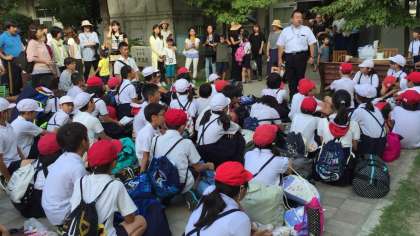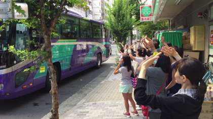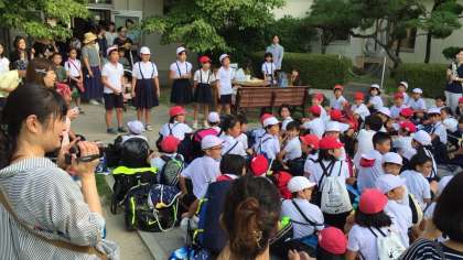 今日から3日間の林間学習。出発式を終えて、バスに乗車。行ってらっしゃい!
