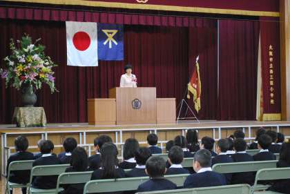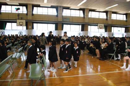 背中をぴんと伸ばし、しっかり話を聞いていた1年生。校長先生から、学校を楽しくするための「3つのめあて」についてのお話がありました。1つ目は、「気持ちのよいあいさつをしよう。」2つ目は、「なんでもあきらめずがんばろう」3つ目は、「友達をたくさん作って大切にしよう」です。がんばろうね!