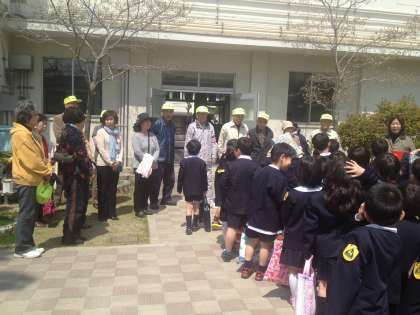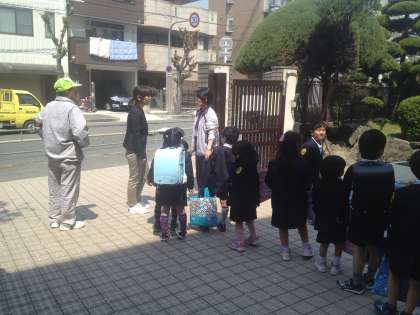 見守り隊の方々にあいさつをした後、それぞれの方面に分かれて付き添っていただき、下校しました。今日は、初めてなのでしっかり道も覚え、楽しくおしゃべりもしながら帰りました。また明日、元気に登校してね!待っています。