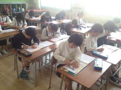 2年生のどちらのクラスも国語の学習をしていました。新しく習う漢字もたくさんあるけれど、「がんばろう!」という気持ちの表れか、みんなていねいに書いていました。音読の宿題も今日からがんばります。おうちでも聞いてほめてあげてくださいね。