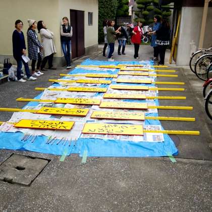 看板に文字を入れ、校区の各ポイントに取り付けていただきました。ご協力いただきましたPTAの方、ありがとうございました。