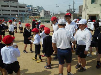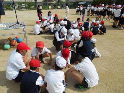 今日は、「なかまあつめ」をしました。一人が一枚ずつ果物の絵がかいてあるカードをもらい、自分と違う種類のカードを集めて、6人で一つのグループをつくるというゲームです。違った学年の子にも「どのカード持ってんの?」「一緒のグループになろう。」など声をかけあって楽しみました。来週からいよいよ縦割り班がスタートします。