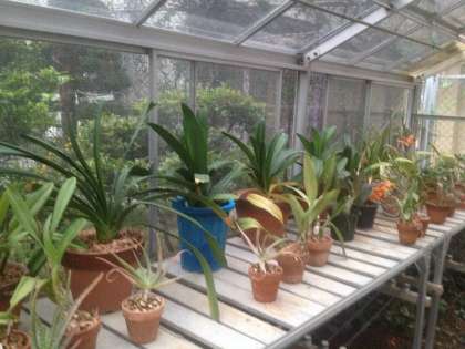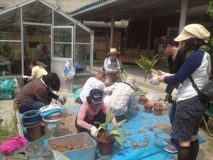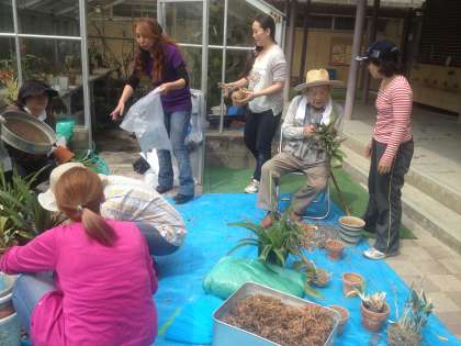 PTA 温室のラン植え替え作業