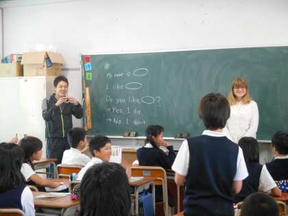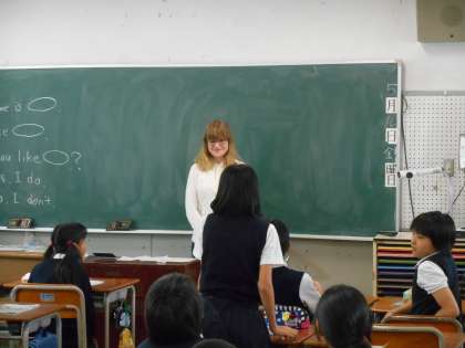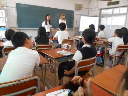 エイプリル先生と今日は、「When is your birthday?」(あなたの誕生日はいつ?)の学習をしました。エイプリル先生の発音をよく聞いて、話しています。