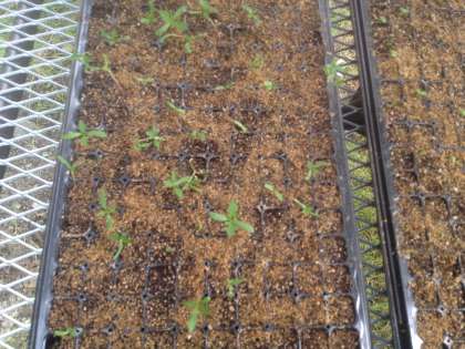 花苗ボランティア活動でまいたサルビアの芽がようやく出てきました。マリーゴールドの双葉も少しずつ大きくなってきています。飼育栽培委員会の子どもたちもよく見に行っています。十三公園事務所のIさんも見回りに来てくださいました。本葉が出て、もう少し育ってきたら植え替えをします。(28日(水)13:30〜を予定しています。)