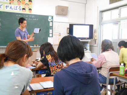 放課後、ICTの研修会を行いました。大阪市教育センターからiPadmini(タブレットパソコン)を20台借りることができたので、それを使った指導法について研修しました。その後パソコン室で、スクールプレゼンターというソフトを使って算数の教材つくりに挑戦!忙しくてもちょっぴり疲れていても、子どもたちの喜ぶ顔を思い浮かべてがんばる先生たちです!!