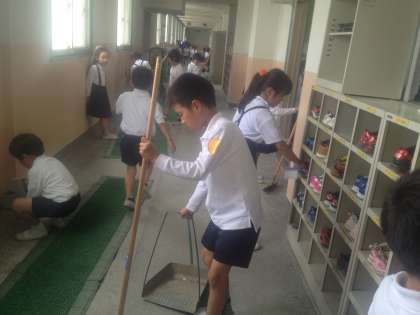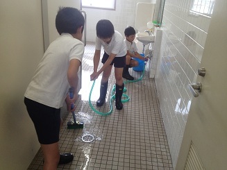給食の後は、全校一斉に掃除の時間です。どの学年も自分の教室やトイレ、廊下、そのほか自分の分担場所でないところなどもしっかり掃除をしている姿が見られました。きれいになると、気持ちもすっきりさわやかです!