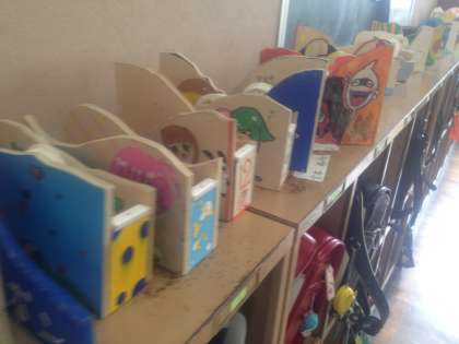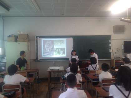 タブレットパソコンで作った「学校紹介」を明日は、1組で発表します。図工で作った作品も展示しています。2組は食育の授業です。教室をのぞいたときは、各自が自主的に学習していて、「ばらの谷」をしっかり試写している子もいました。