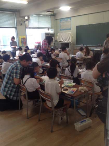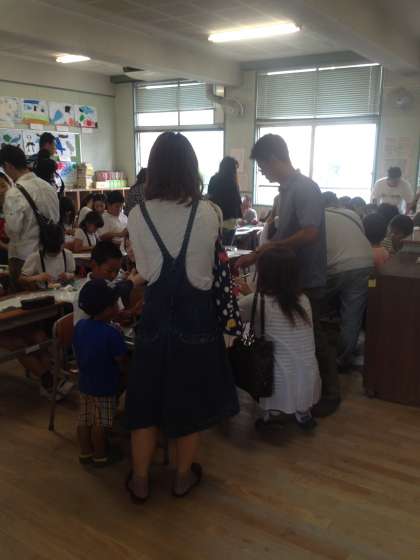 図工「カラフル粘土のお店へようこそ」の学習をしました。紙粘土を絵具で染めて、食品などをおうちの人といっしょに作りました。