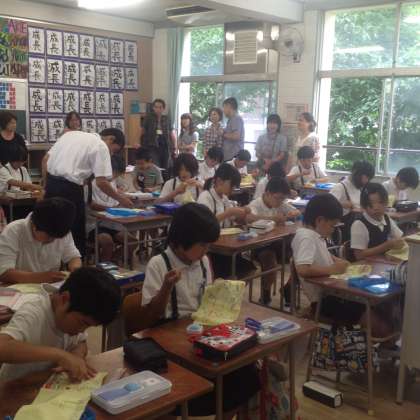 家庭科「はじめてみよう ソーイング」の学習です。糸通し、玉結び、玉止めが、すこしずつ上手になってきました。