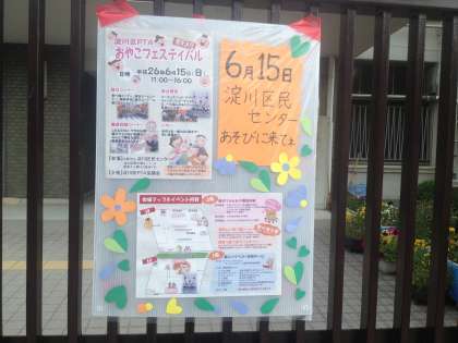 15日(日)11:00〜16:00 淀川区民センターで、区PTA主催のおやこフェスティバルが開かれます。PTAの役員、実行委員さんたちは4月からいろいろ準備をしてくださっています。雨天決行!とのことです。親子でのぞいてみてくださいね。楽しい催しがいっぱいですよ。