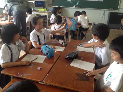 算数「角の大きさをはかろう」の授業研究を行いました。たくさんの先生が見に来られたので、とてもよくがんばりました。いい考えもたくさん出てほめてもらいました。