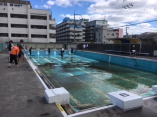 いよいよ来週から水泳指導が始まります。6月13日(水)、今日はプール清掃を行いました。運動委員会の子どもたちも手伝ってくれました。