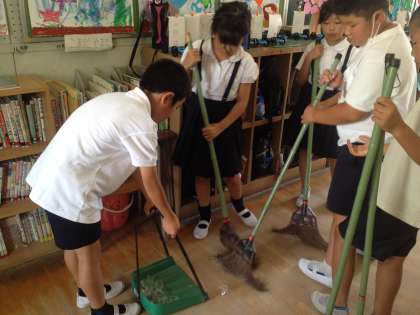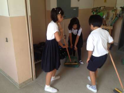 本校の掃除は給食を食べてすぐにスタートします。みんなで力を合わせて教室や廊下をきれいに。今週いっぱいは、まだトイレ掃除は教職員が行います。