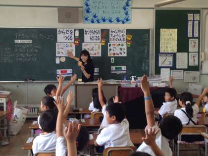 今日淀川区内の小学校の栄養教諭による栄養指導がありました。1年生は「すききらいなくたべよう」という話をしてもらいました。食べ物のはたらきや赤・黄・緑といった分類などを教えていただきました。「すききらいなく、なんでもたべよう。」と思った子がたくさんいました。