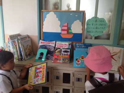 淀川図書館長セレクトの本が今月も届きました。「夏」をキーワードに、花や生きものの図鑑、自由研究、物語などたくさんそろえてくださいました。ありがとうございます。さっそく1年生が「かしてください。」と手に取っていたのは、アサガオの図鑑でした!