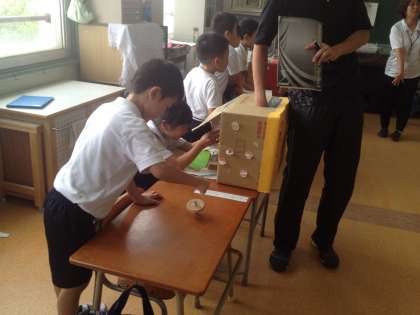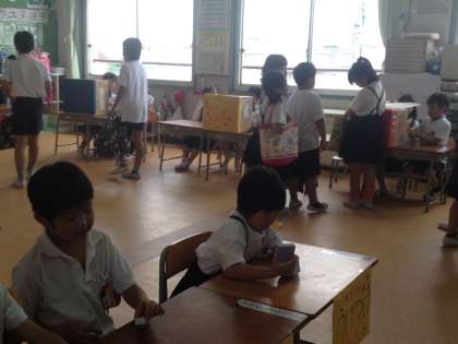 目をつむって箱の中身をあてます。ちょっとどきどきします!