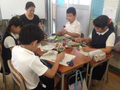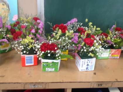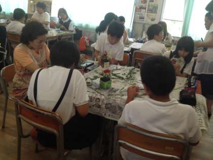 「お母さんが喜ぶな。」「生け花を習いたいな。」などの感想がありました。保護者の方もお手伝いと体験をしていただきました。
