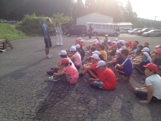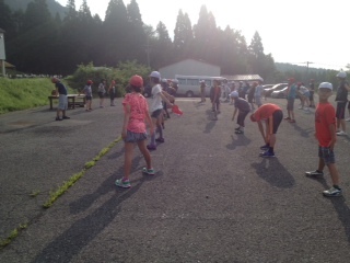 おはようございます。朝から元気いっぱいの子どもたちです。お天気も何とか回復し、予定通りのプログラムが進められそうです。今日も一日頑張るために、朝の体操で心と体をしっかりほぐすことができました。