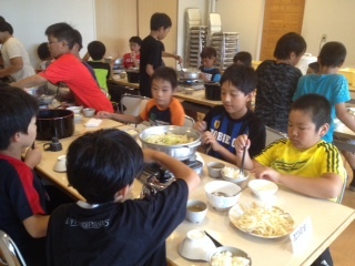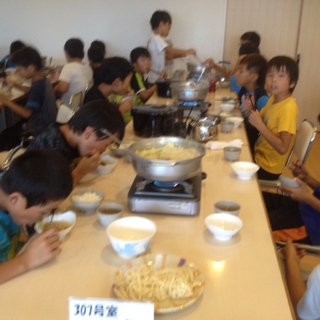 お待ちかねの夕食タイムです。昨日に続き、ルールを守って、楽しく食事をする5年生でした。しっかり食べて夜のナイトハイクに備えます。