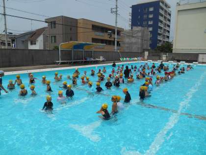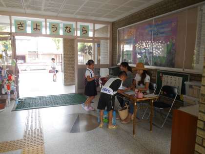 3連休明けの夏休み初日。水泳指導がスタートしました。たくさん参加して、泳力を伸ばしてほしいと思います。受付は、PTAのお母さん方が担当してくださり、教員が指導に集中できて大変助かります。ありがとうございます!