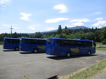予定より少し早くハチ高原に到着しました。良い天気で山がとてもきれいです。これから3日間、自然がいっぱいの環境でさまざまな体験活動をしていきます。子どもたちは、これからの活動が楽しみでワクワクした様子です。