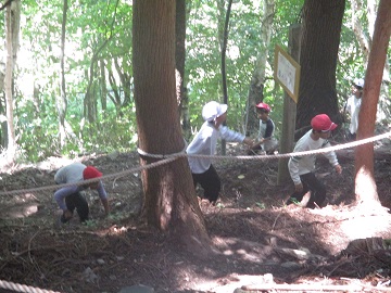 山道に20のアイテムがあり、行動班でチャレンジしていきます。班で助け合って楽しみながらクリアしていきました。