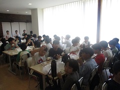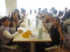 そして、活動広場で食べる予定にしていましたが、外は暑いので、宿舎のご厚意で冷房の効いた宿舎の食堂で食べさせていただきました。