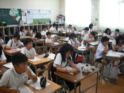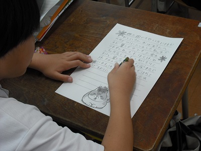 4年生の教室では、「暑い日が続いていますがお元気で」や「私たちは遠足や運動会を楽しみにしています」など、子どもたちなりにいろいろと考えながら、心を込めておじいさん、おばあさんにお手紙を書いていました。