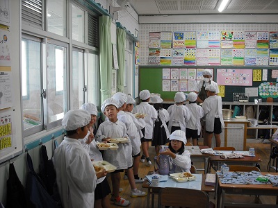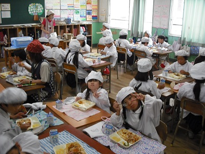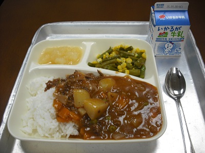 子どもたちの大好きなハヤシライスです。2年生の教室では「お増やし」の行列ができていました。アスパラガスもしっかり食べてくださいね。