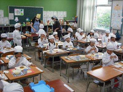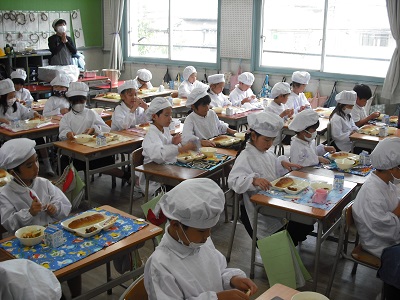 1年生の子どもたちは、お腹がペコペコでのようです。今日も栄養満点、美味しい給食、しっかりと食べましょう。