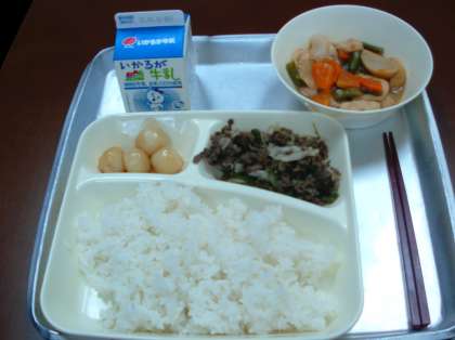 今日は月見の行事献立です。今年の中秋の名月は10月6日なので、少し早めの月見の行事献立です。おだんごはしっかりと噛んで味わって食べましょう!