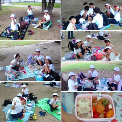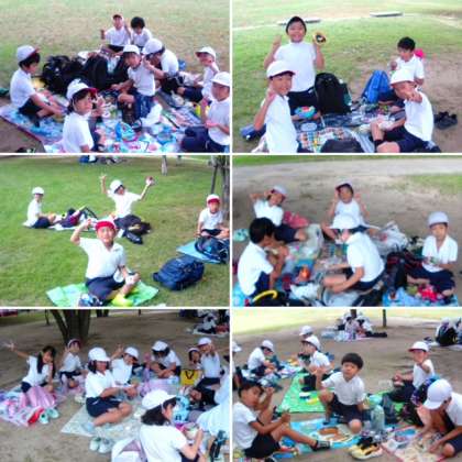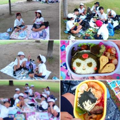 たくさん遊んでお腹が空きました。みんな楽しみにしていたお弁当タイムです。