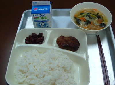 今日は子どもたちに人気のハンバーグで、みんなよく食べていました。
