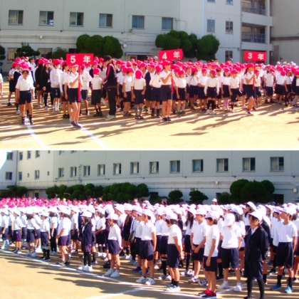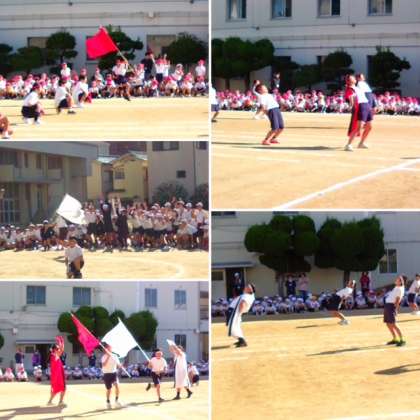続いて応援合戦の練習を始めから通して行いました。赤白ともに気合いの入った応援になりました。