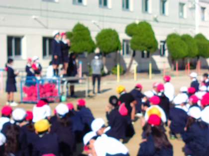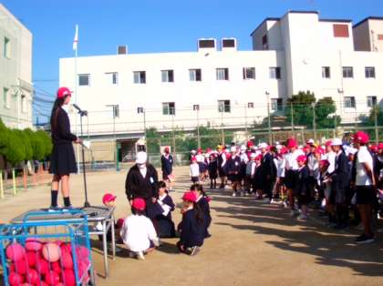 今日の朝は運動場で児童集会を行いました。運動場で児童集会を行うのは久しぶりです。