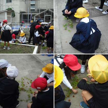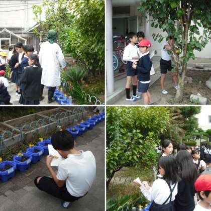 校庭では1年は生活科、4年生は理科の学習をしていました。