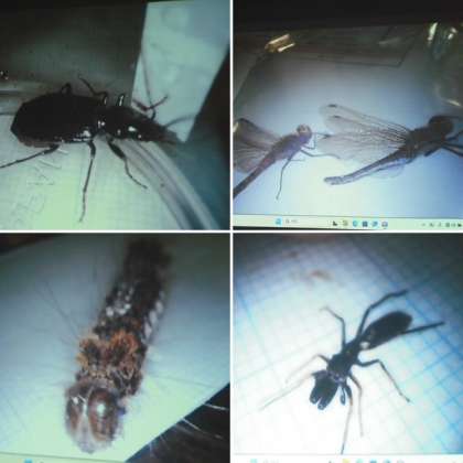 その後、多目的室でそれぞれのグループで発見した生き物を発表しました。春には見つけられなかった生き物もたくさんいて、季節の移り変わりを感じます。そして、自分たちが見つけた生き物をマイクロスコープでスクリーンに映し出されると、とても迫力があってみんな驚いていました。