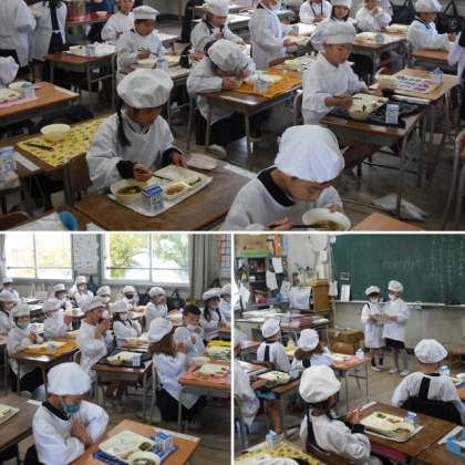 1年生は1組がいないので、2組が1クラスで少し寂しいですが、みんな楽しく美味しく給食を食べています。