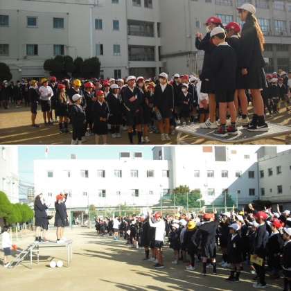 今日は児童集会を運動場で行いました。今日は「船長さんの命令ゲーム」をしました。「船長さんの命令で・・・」という言葉があった時だけ指示に従って、「命令で・・・」に従って動いた時はアウトです。